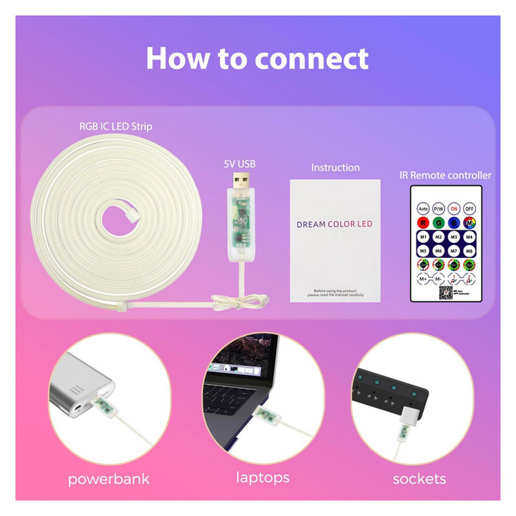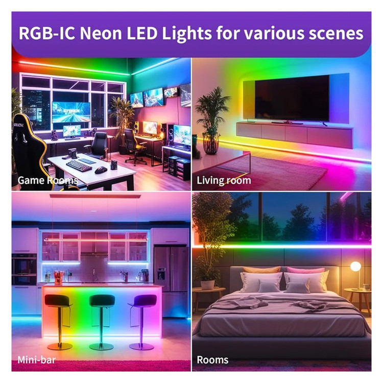 ریسه نئون فلکسی دریم لایت مدل برنامه پذیر آی سی دار حلقه ۵ متری جنس درجه یک، شاهکاری در نورپردازی مدرن است که توانسته نگاهها را به خود جلب کند. این ریسه با قابلیت برنامهریزی رنگها و افکتهای نورانی جذاب، هر فضایی را به یک صحنه هنری تبدیل میکند. مواد اولیه باکیفیت و تکنولوژی پیشرفته استفادهشده در این ریسه، دوام بالا و عملکردی بدون نقص را تضمین میکند. این ریسه برای کاربردهای متنوعی چون طراحی داخلی، رویدادها و تبلیغات نوری ایدهآل است به ویژه برای فضاهایی که نیاز به رنگهای متنوع دارند مانند نمایشگاهها یا حتی تزئینات خانگی، گیم نت ها ، استریوها ، اتاق خواب و کابین داخل ماشین ایدهآل است. اگر سلیقه شما به سمت رنگهای خاصتر میرود، قطعا انتخاب مناسبی برای شما خواهد بود.این ریسه دارای فناوری RGB-IC بوده یعنی 16 میلیون رنگ با تنوع بیش از 200 حالت، قابلیت نورپردازی خواهد داشت. ویژگی ها : مولتی کالر: قابلیت نمایش طیف گستردهای از رنگها. برنامهپذیری: امکان تنظیم و برنامهریزی الگوهای نوری مختلف از طریق کنترلر. آیسیدار: وجود تراشههای الکترونیکی برای کنترل دقیق و هماهنگ نورها. انعطافپذیری: به دلیل ساختار فلکسی، میتوان آن را به شکلها و زوایای مختلف خم کرد. طول ۵ متری: مناسب برای استفاده در فضاهای مختلف با طول متوسط. تنظیم برنامه زمانی و تایمر : دارد تغییر سرعت افکت : دارد تغییر شدت روشنایی : دارد روش های کنترل : نرم افزار موبایل (App) + ریموت کنترلر + کنترل پنل درایور میکروفون داخلی : دارد مدل رونده: دارد حساس به صدا: دارد نوع اتصال: USB قابلیت همگام سازی با موزیک/صدای محیط : دارد