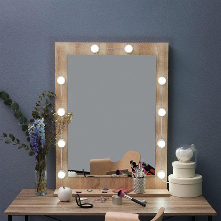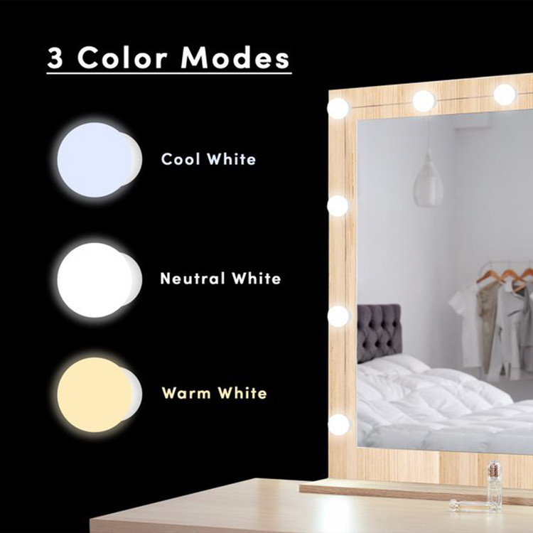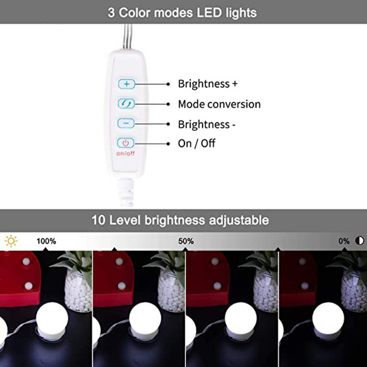 چراغ مدل هالیوودی دلفین. این نوع چراغها معمولاً جهت میزهای آرایش استفاده میشوند ولی جنبه زیبایی هم دارند. چراغها توسط کلید روی آنها به 3 رنگ سفید طبیعی، مهتابی و آفتابی تغییر میکنند. همچنین میتوانید شدت نور را تغییر دهید.