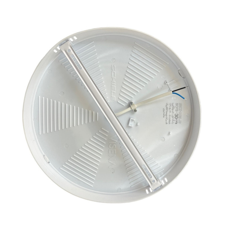 پنل روکار فول لایت 30وات شیله؛ مناسب فضای داخلی ساختمان طراحی و از لحاظ نوع روشنایی فول لایت میباشد. این چراغ اس ام دی از نوع پنلهای نورانی بوده که بر روی سقف نصب و از طریق لامپهای LED روشنایی محیط را تامین میکند. این پنل انرژی بسیار کمی مصرف و جایگزین اصلی لامپهای معمولی، پنلهای قدیمی، مهتابیها و لامپهای کم مصرف فعلی میباشد. پنل گرد معمولا برای محیطهایی کاربرد دارد که طراحان علاقه ندارند که در آن احساس قرینگی القا شود. پنل اس ام دی فول لایت شیله؛ با شکل گرد، قادر است در حدود 30 وات توان روشنایی تولید نماید. بدنه این چراغ به رنگ سفید و از نوع ABS یا پلاستیک فشرده میباشد. ابعاد بیرونی آن 30 سانتیمتر با عمق تقریبی 4 سانتیمتر بصورت روکار نصب میگردد. پنل 30 وات گرد فول لایت دارای میزان نور 2550 لومن با زاویه تابشی 120 درجه و رنگ نور نچرال، نوری یکنواخت و بدون سایههای اضافه در محیط پخش میکند. تا افراد حاضر در محل بدون خستگی چشم یا احساس مزاحمت به امورات خود بپردازند.