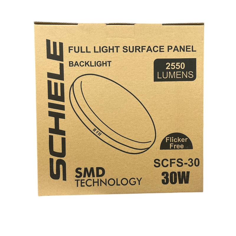 پنل اس ام دی فول لایت شیله؛ با شکل گرد، قادر است در حدود 30 وات توان روشنایی تولید نماید. بدنه این چراغ به رنگ سفید و از نوع ABS یا پلاستیک فشرده میباشد. ابعاد بیرونی آن 30 سانتیمتر با عمق تقریبی 4 سانتیمتر بصورت روکار نصب میگردد. پنل 30 وات گرد فول لایت دارای میزان نور 2550 لومن با زاویه تابشی 120 درجه و رنگ نور نچرال، نوری یکنواخت و بدون سایههای اضافه در محیط پخش میکند. تا افراد حاضر در محل بدون خستگی چشم یا احساس مزاحمت به امورات خود بپردازند.