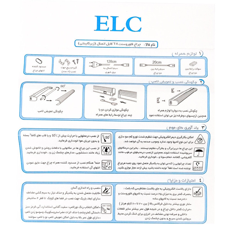 چراغ زیر کابینتی 26 وات ایالسی مدل T4