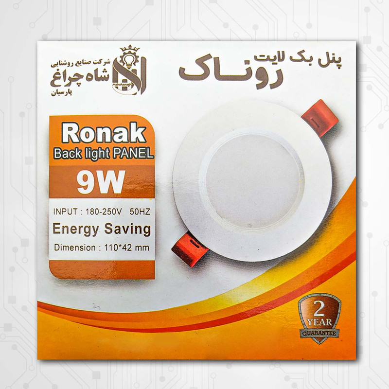 پنل سقفی طرح روناک مدل شاهچراغ در رنگ های مختلف عرضه میشود این پنل سقفی با برچسب انرژی A+ گزینه کم مصرف و مناسبی برای استفاده روز مره است قطر فنر تا فنر محصول 80mm می باشد (سایز برش) امتیاز عالی این محصول نسبت به سایر کالا های مشابه بی کیفیت و جود هیت سینک آلومینیوم به جای پلاستیک است که محصول رو در برابر گرمای و آسیب مقاوم میکند.