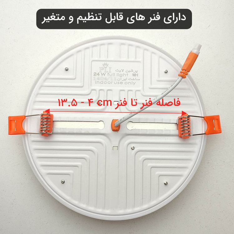 لامپ هالوژن ال ای دی فول لایت 24 وات پرشین لایت از پنل های گرد بدون لبه توکار می باشد. نوردهی این محصولات در سه رنگ مهتابی، آفتابی و استاندارد (نچرال یا طبیعی یا روز)عرضه می شود. این پنل فاقد لبه و دارای نوری یک دست و کامل می باشد. جنس بدنه از آلومینیوم و دیفیوز از پلی کربنات مات بوده و نور را کاملا پخش میکند. همچنین دیفیوزر محصول در طول زمان تغییر رنگ نداده و پخش نور آن به صورت یکدست می باشد. یکی از ویژگی های منحصر به فرد این پنل توکار فنر های متغیر و تنظیم شو آن است که فاصله آن از 4 تا 13.5 سانتی متر قابل تغییر می باشد. توجه شود که این پنل های تمام نور، ضد آب نمی باشد و تنها جهت استفاده در فضای داخلی ساخته شده است. از دیگر مزیت های این پنل ال ای دی می توان به بدون اشعه UV و مادون قرمز، لامپ SMD با شار نوری بالا، بهره وری بالای انرژی و کم مصرف، هیت سینک مناسب برای دفع حرارت لامپ ها، عدم تولید گرمای اضافی، زاویه نور 180درجه و... اشاره کرد.
