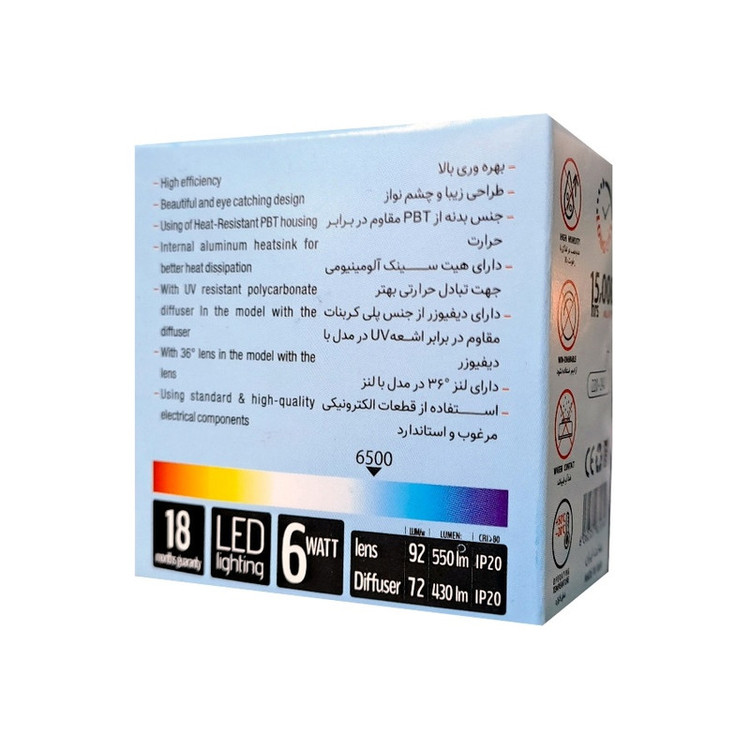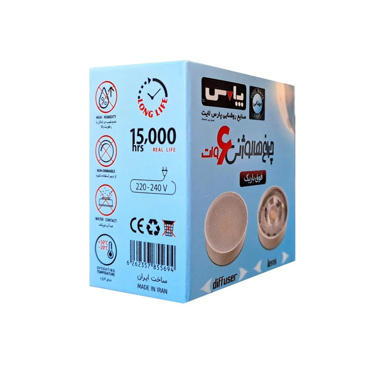x قابل جایگزینی با انواع لامپ های هالوژنی پایه سوزنی و استارتی x قابل استفاده در فضاهای با محدودیت ارتفاع به دلیل طراحی باریک محصول x قابل سفارش به همراه قاب یا به صورت جدا x هیت سینک آلومینیومی داخلی جهت تبادل حرارتی بهتر x اتصال از طریق دو رشته سیم و عدم نیاز به سوکت x دارای بدنه از جنس PBT مقاوم در برابر حرارت x رنگ نور: مهتابی، آفتابی، طبیعی x دمای نور 4000K, 3000K, 6500K میباشد صنایع روشنایی پارس لایت با بهرگیری از دانش طراحی صنعتی و فن آوریهای نوین و استفاده از متخصصین مجرب و کارآزموده، توانسته است در مدت زمانی کوتاه،گام بلندی در زمینه طراحی و تولید انواع چراغ های روشنایی بردارد. واحد طراحی و ساخت این مجموعه با بهرگیری از جدیدترین نرم افزارها، تجهیزات و ماشین آلات، موفق به تولید محصولاتی مطابق با استانداردهای داخلی و بین المللی شده است. صنایع روشنایی پارس لایت هدف خود را جلب رضایت مصرف کننده قرارداده و بر این باور است که کیفیت حق اصلی مصرف کننده میباشد.