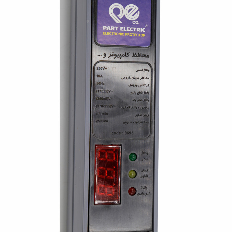 محافظ برق مدل PE6642 Rack Mount پارت الکترونیک مناسب استفاده به منظور جلوگیری از آسیب دیدن دستگاه های برقی در اثر نوسانات جریان و ولتاژ اشت که می تواند در صورت بروز این مشکلات، برق رسانی را به کل قطع کند. این محافظ دارای 8 پریز ارت دار با بدنه ای ساخته شده از متریال مقاوم می باشد و با طراحی رک مونت قابلیت به کارگیری در رک های تجهیز و راه اندازی شبکه دوربین مداربسته، همچنین سیستم های کامپیوتری، تلویزیون، لوازم خانگی و … را نیز دارد. چندراهی برق سری آذین پارت الکتریک از محافظ داخلی بهره برده که با پشتیبانی از حداکثر شدت جریان انتقالی 10 آمپر در ولتاژ ورودی 250 ولت و حداکثر توان خروجی 2500VA با میزان تاخیر حدود 1 دقیقه، از دستگاه های برقی متصل در برابر اتصالات کوتاه، بار جریانی کم و یا بیش از اندازه به درستی محافظت می کند. طول کابل 8 راهی ارت دار و رکمونت پارت الکتریک مدل PE6642 برابر با 1٫8 متر درنظر گرفته شده تا بتوان دستگاه های دور از پریز برق را نیز به آن متصل نمود. بر روی بدنه این محصول یک دکمه روشن خاموش، یک نمایشگر دیجیتال جهت نمایش ولتاژ عبوری و نیز سه چراغ در رنگ قرمز، زرد و سبز برای اعلام وضعیت کارکرد دستگاه تعبیه شده است.