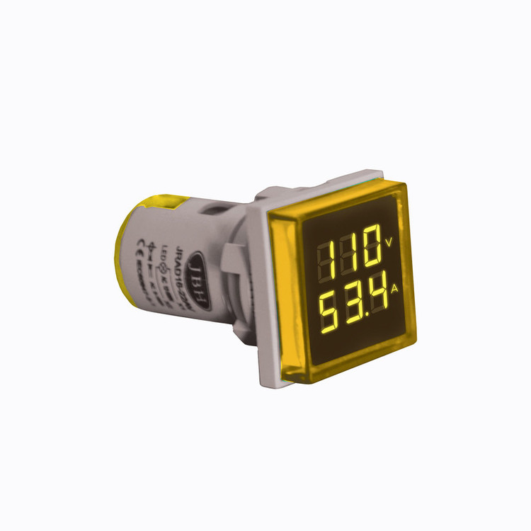 چراغ سیگنال ولت و آمپر مربع قطر 22 میلی متر رنگ زرد.