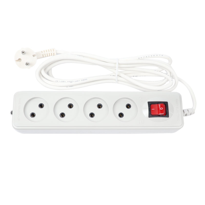 چند راهی برق ۴ خانه بدون ارت از محصولات تولیدی شرکت پارت الکتریک که تحت عنوان مدل PE308 به بازار عرضه شده است. این چندراهی دارای ۴ خروجی برق بوده که به شکل مستطیل طراحی شده است. جنس بدنه این محصول از پلاستیک فشرده با کیفیت بالاساخته شده است. ولتاژ ورودی ۴ راهی پارت الکتریک ۱۷۵-۲۲۰ ولت و حداکثر جریان انتقالی آن ۱۶ آمپر است. طول کابل برق این محصول ۳ متر بوده و دارای یک کلید جهت روشن و خاموش کردن دستگاه است. این محصول دارای نشان استاندارد ملی ایران ISO 9001_ISO 9001-2008 و دارای گواهینامه استاندارد اروپا CE می باشد و همچنین در برابر رطوبت، حرارت، گرد و غبار مقاوم است.