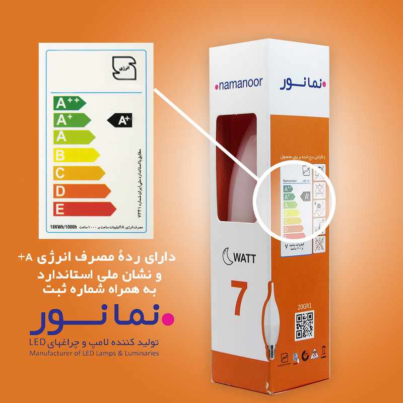 لامپ ال ای دی 7 وات نمانور مدل اشکی با ردۀ مصرف انرژی A+ و نوردهی بسیار مناسب یکی از بهترین گزینه ها برای نصب روی انواع لوستر و چراغهای تزیینی است. این لامپ با کیفیت که دارای علامت استاندارد ایران است، دارای زاویه تابش 180 درجه ای و عمر مفید 15 هزار ساعتی است که در نوع خود فوق العاده محسوب می شود. همچنین، در کنار توان 7 واتی، اندازۀ فیزیکی این لامپ اشکی نیز طبق استانداردهای جهانی بوده و تمام این موارد لامپ ال ای دی نمانور مدل اشکی را تبدیل به یک انتخاب هوشمندانه برای مصرف کننده کرده است. از دیگر مشخصات اصلی این لامپ ال ای دی میتوان به عدم انتشار پرتوهای زیانآور ماورای بنفش (UV) و عدم وجود جیوه در آن اشاره کرد که همین موضوع باعث شده این لامپ هیچگونه آسیب و آلودگی برای محیط زیست نداشته باشد. لامپ ال ای دی نمانور مدل اشکی میتواند روشنایی خوبی معادل یک لامپ 60 وات معمولی (تنها با مصرف 7 وات) داشته باشد. این لامپ اشکی، دارای کمترین میزان تولید گرما بوده و از این جهت هم باعث بالا تر رفتن طول عمر چیپ داخلی خود شده است و هم از رنگ پریدگی شید لوستر در طولانی مدت جلوگیری خواهد کرد. از مشخصات بارز محصولات نمانور، میتوان به طول عمر بالا، مصرف انرژی پایین، و مناسب بودن برای محیط زیست (بدون هیچگونه مواد مضر )، و همچنین عدم انتشار هرگونه پرتو خطرناک اشاره نمود. برند نمانور یکی از خوشنام ترین و شناخته شده ترین برندهای ایرانی در زمینۀ تولید لامپهای ال ای دی است. این لامپ دارای نشان ملی استاندارد به همراه شماره ثبت بوده که همین موضوع گواه کیفیت بالای آن در مقایسه با سایر رقبای متفرقه به شمار می رود.