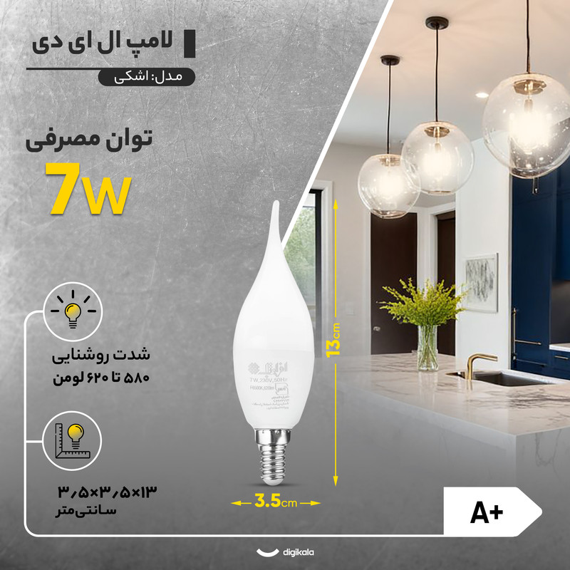 لامپ ال ای دی 7 وات افراتاب نور آفتابی مدل اشکی پایه E14 بسته ۱۰ تایی