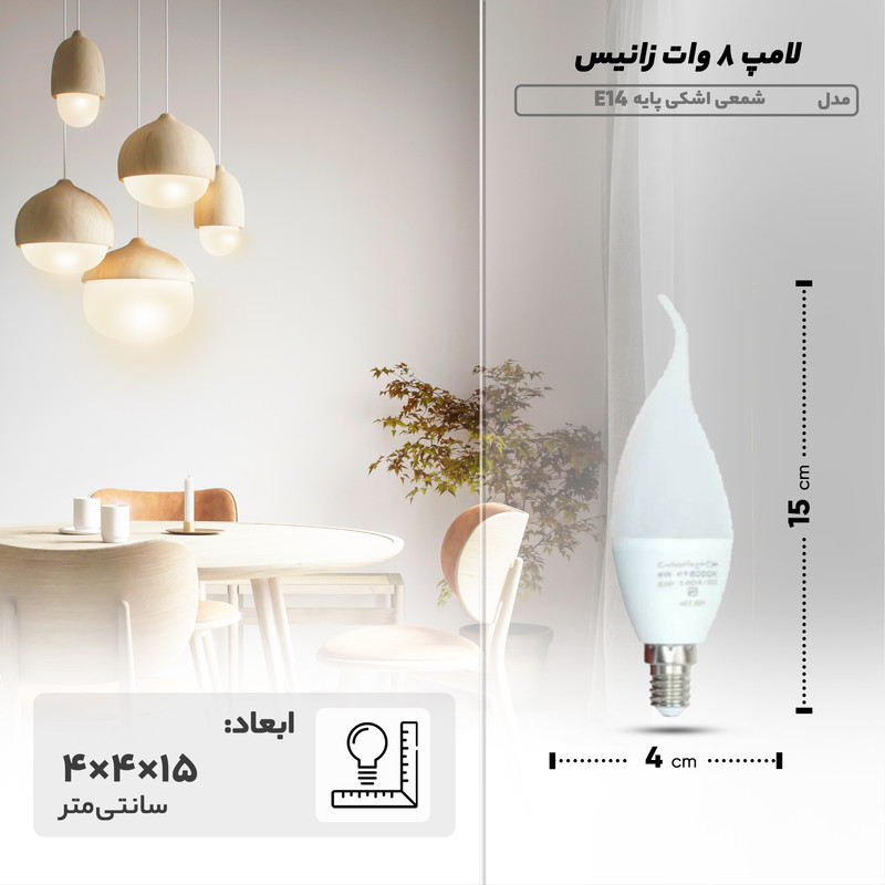 لامپ 8 وات زانیس مدل شمعی اشکی با پایه E14، یک انتخاب ایدهآل برای ایجاد نور ملایم و دلنشین در فضاهای داخلی است. این لامپها به شکل شمعی طراحی شدهاند و با ظاهری زیبا و کلاسیک، به دکوراسیونهای سنتی و مدرن جلوهای خاص میبخشند. با توان 8 وات، این لامپها نوری معادل لامپهای قدیمی با توان بالاتر تولید میکنند و به همین دلیل، انتخابی مناسب برای صرفهجویی در انرژی به شمار میآیند. این بسته شامل 10 عدد لامپ است که آن را به گزینهای اقتصادی و کارآمد برای نورپردازی محیطهای مختلف تبدیل میکند. طراحی اشکی این لامپها، آنها را به یک عنصر دکوراتیو جذاب تبدیل کرده و میتوانند در لوسترها، آباژورها و سایر سیستمهای روشنایی به کار روند. با استفاده از فناوری الایدی، این لامپها دارای عمر طولانی و مصرف انرژی پایین هستند. با انتخاب لامپ 8 وات زانیس مدل شمعی اشکی، میتوانید فضایی گرم و دلپذیر برای خود و مهمانانتان ایجاد کنید و از نور ملایم آن در طول شب لذت ببرید.