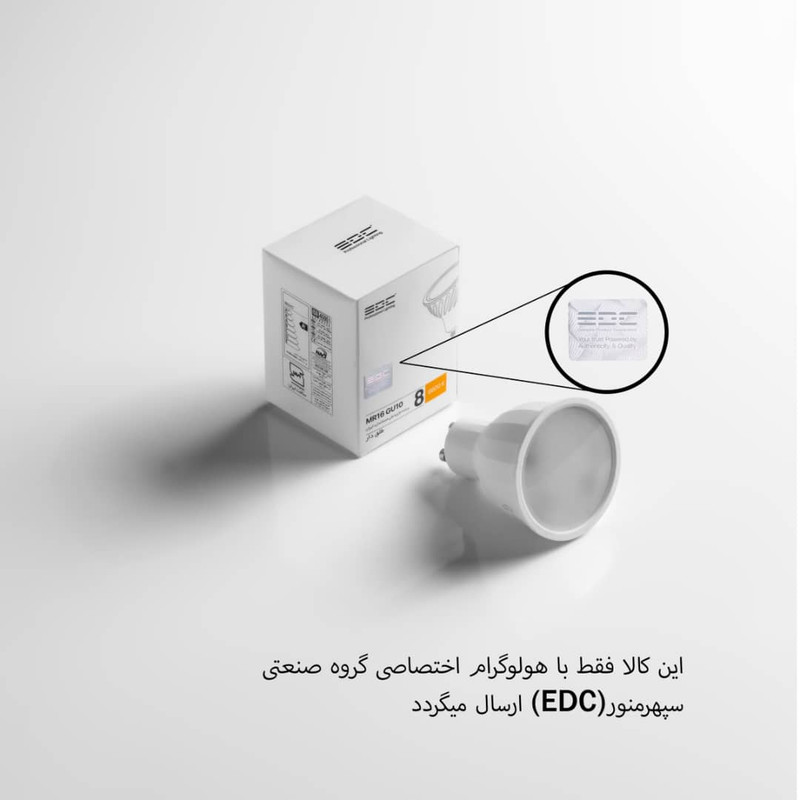 لامپ MR16 طلقدار EDC با پایه GU10 طراحی شده و مستقیماً با برق ۲۲۰ ولت AC کار میکند. درجه حفاظت IP20 و عملکرد در محدوده دمایی ۰ تا ۵۰ درجه سانتیگراد، استفاده ایمن آن را در محیطهای داخلی تضمین میکند.