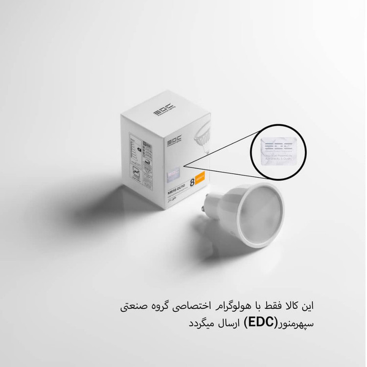 لامپ الایدی MR16 (هالوژنی) طلقدار EDC با توان مصرفی ۸ وات، روشنایی قدرتمند و یکنواختی را ارائه میدهد. طراحی استاندارد و وزن سبک آن، نصب آسان و ایمن را ممکن میسازد و آن را به گزینهای ایدهآل برای استفاده در سیستمهای روشنایی داخلی تبدیل کرده است.