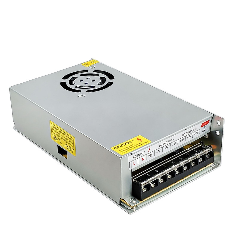 منبع تغذیه یا پاور مدل S-240-12 با خروجی 12 ولت 20 آمپر تثبیت شده ، که از فیلتر EMI جهت عدم ورود نویز موجود در شبکه برق شهر بهره می برد علاوه بر آن با دارا بودن بدنه فلزی تمامی نویز های ناشی از امواج الکترومغناطیسی در محیط را نیز حذف کرده و با دارا بودن رگولاتور ولتاژ ، خروجی تثبیت شده 12 ولت را ارائه می دهد.بدلیل اینکه دستگاه تا توان 240 وات را پشتیبانی می کند جهت عدم افزایش دمای قطعات نیمه هادی و تغییر نقطه کار ، جهت تثبیت دقیق ولتاژ در جریان و توان بالا ، یک فن در بدنه دستگاه تعبیه شده است تا گرمای بیش از حد مجاز را از دستگاه خارج کند.دستگاه دارای 9 کنتاکت است که 2 تا مربوط به برق ورودی 220 ولت و یک عدد مربوط به اتصال زمین و 3 کنتاکت مثبت و 3 کنتاکت منفی جهت استفاده برای 3 دستگاه مستقل می باشد .